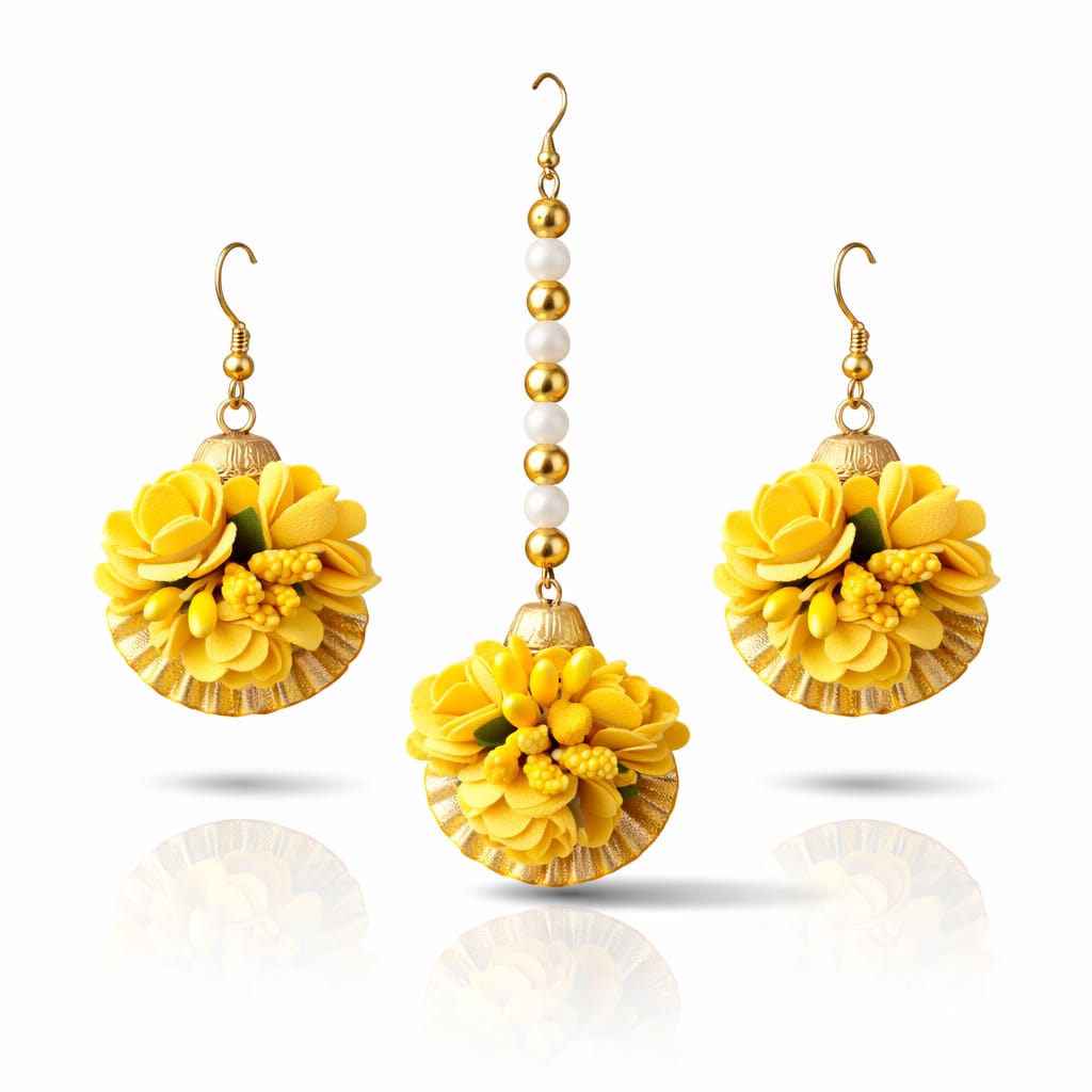 • Beautiful handmade-style floral jewellery set in bright yellow colour